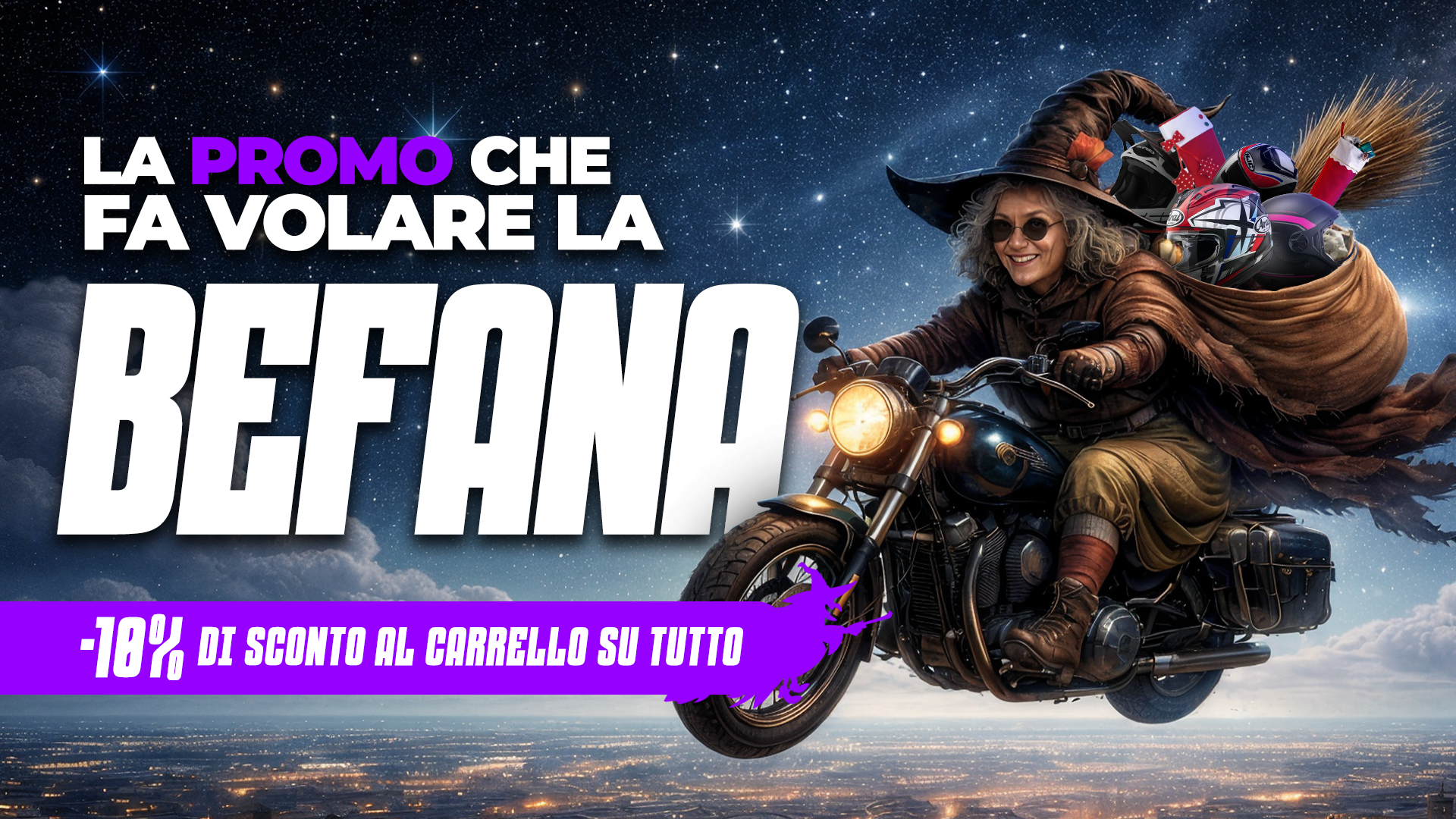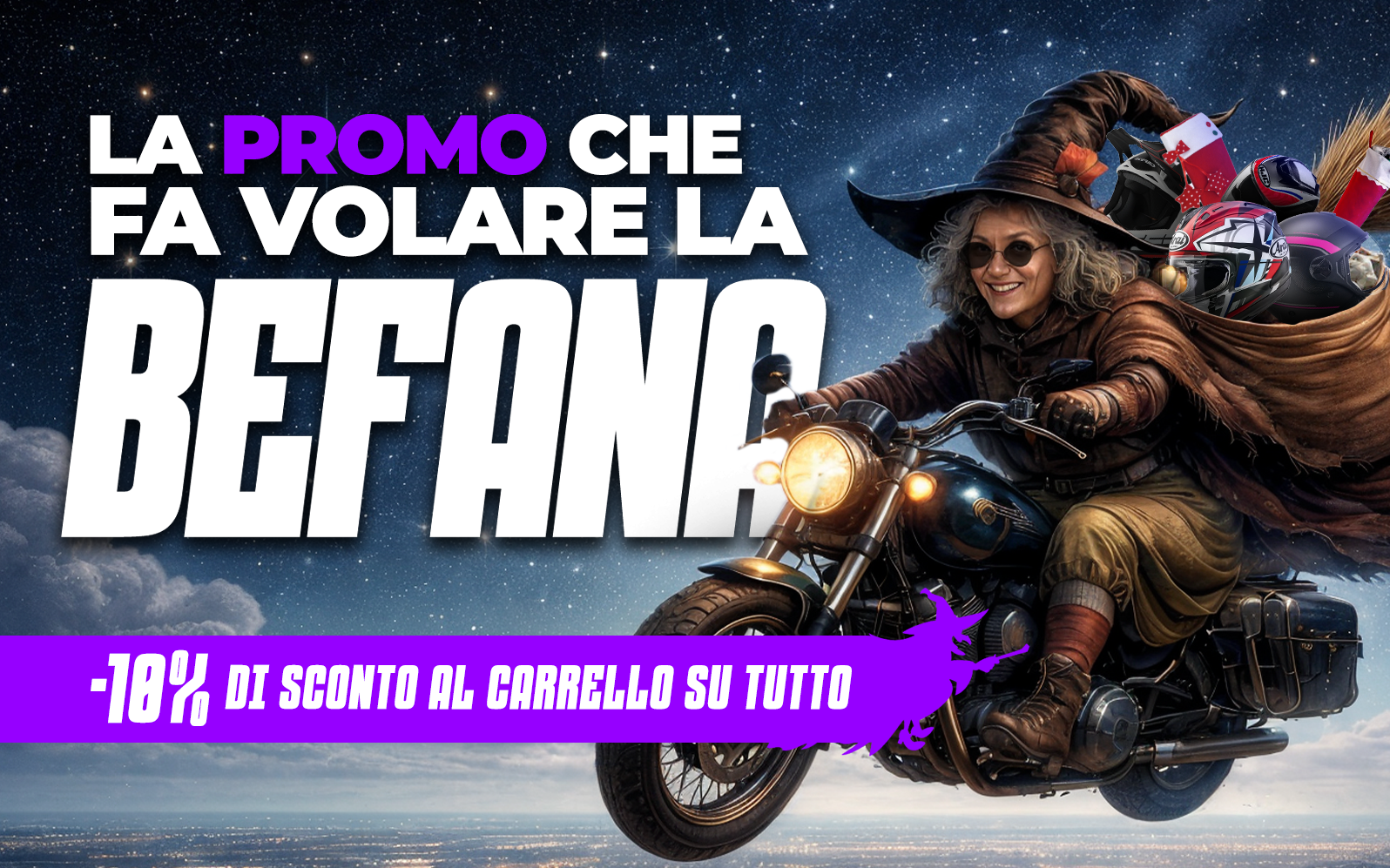 -10% in automatico al carrello! Caschi integrali, caschi jet, caschi modulari, pantaloni, scarpe, accesssori e tanto altro pronti ad arrivare sotto l'albero!